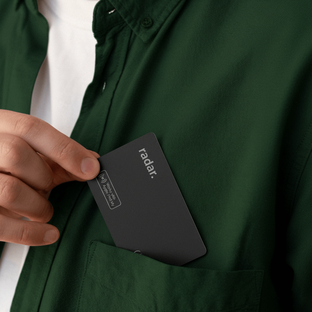 The Radar Tracker Card connects seamlessly with Apple’s Find My app, giving you a simple way to keep track of your most important things. Slide it into your wallet, bag, or luggage - and if it ever goes missing, you can instantly see its location on a map or make it play a sound to help you find it nearby. It’s that easy - smart, discreet, and designed to keep your essentials close.